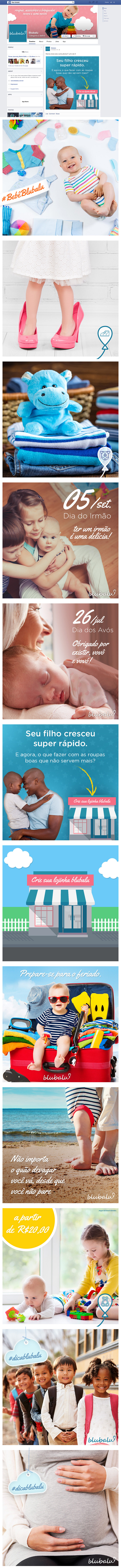 Criação de posts para o novo projeto de compra e venda de roupas infantis do Blubalu. Juntamente com o planejamento foram criados padrões visuais para diferentes necessidades de divulgação da marca no facebook.