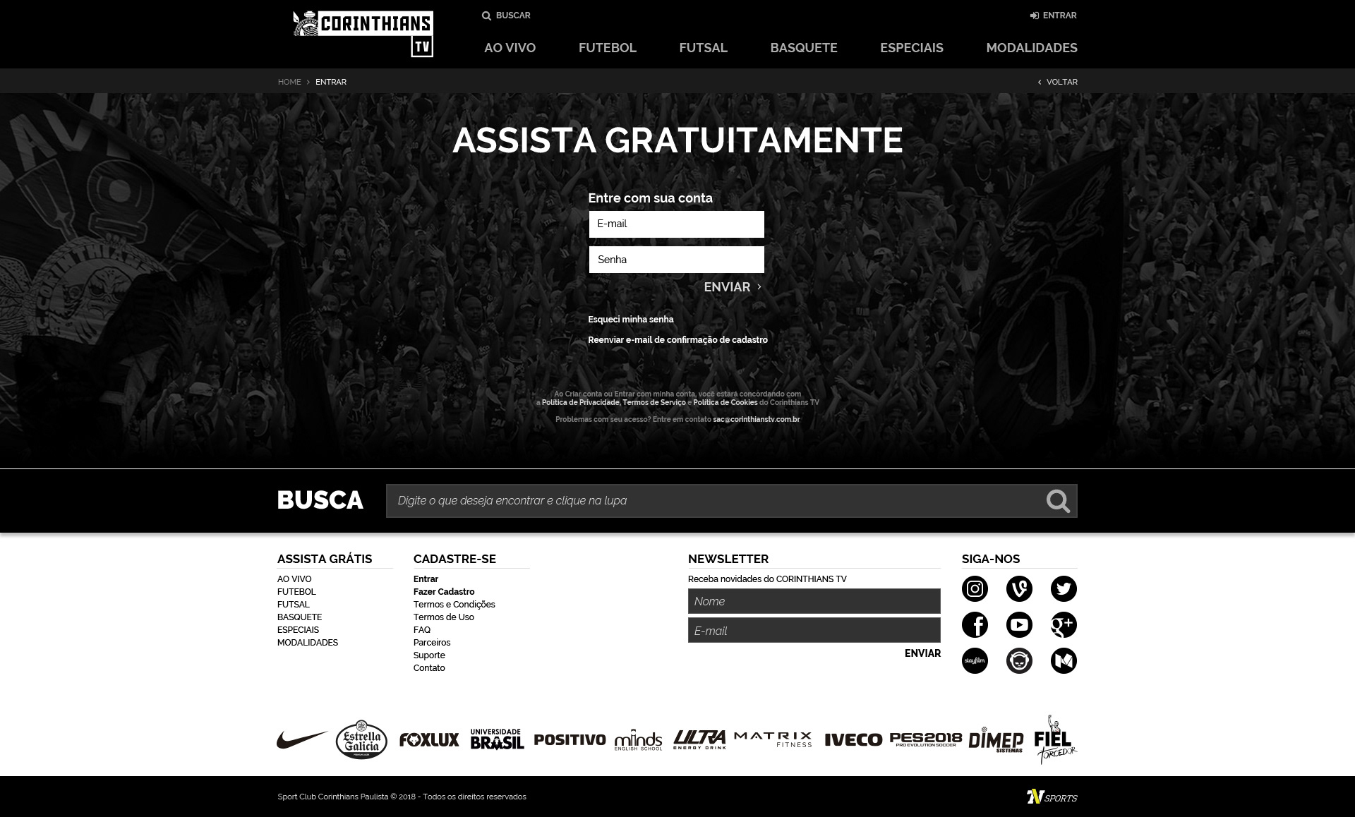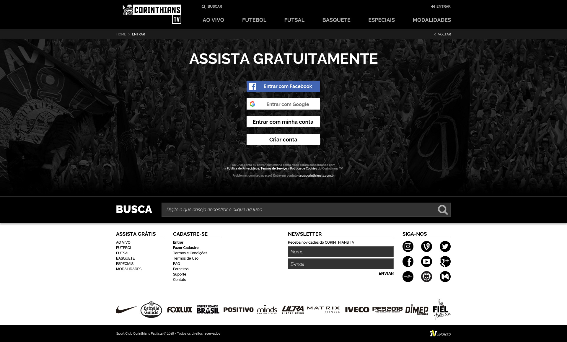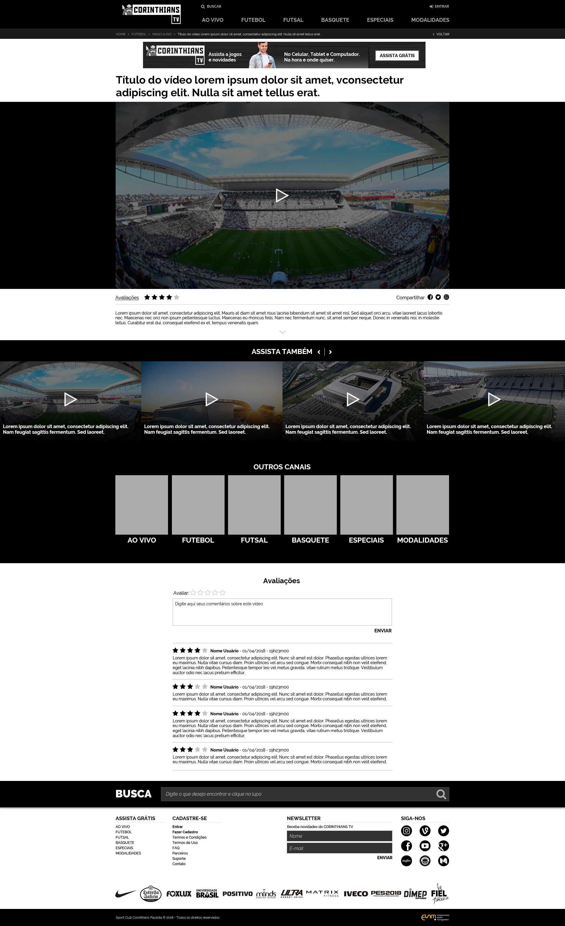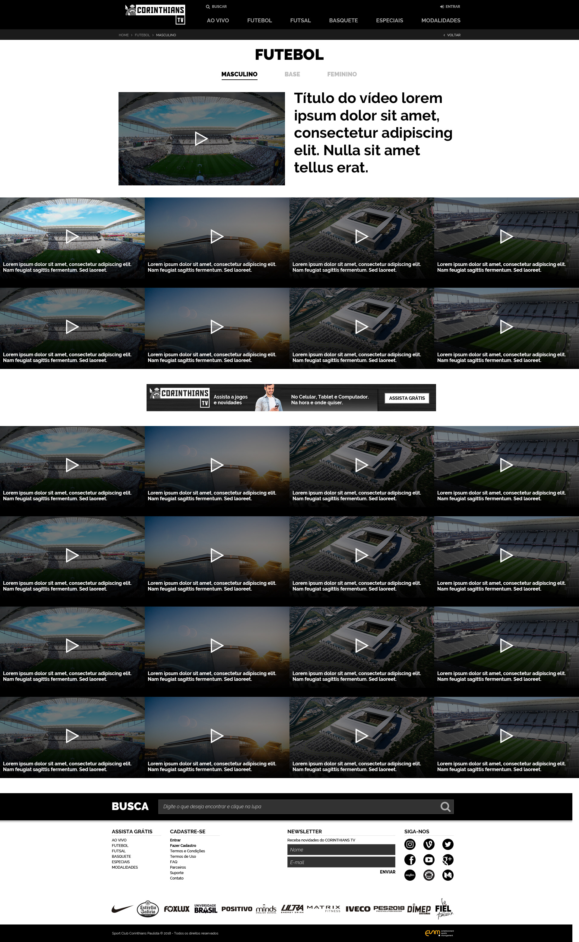Corinthians TV - Criação de site para a nova plataforma de streaming ao vivo e gratuito do Corinthians.