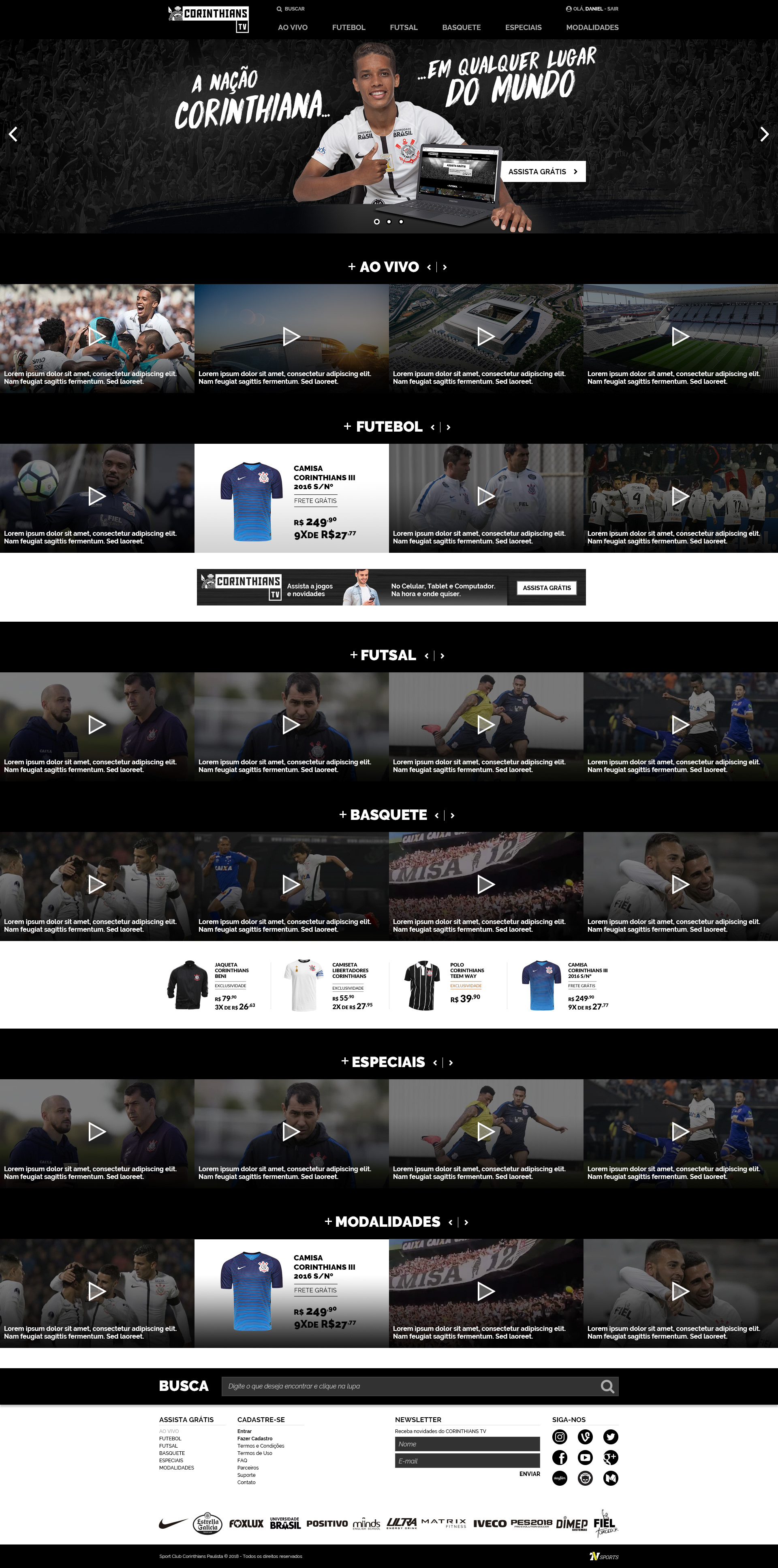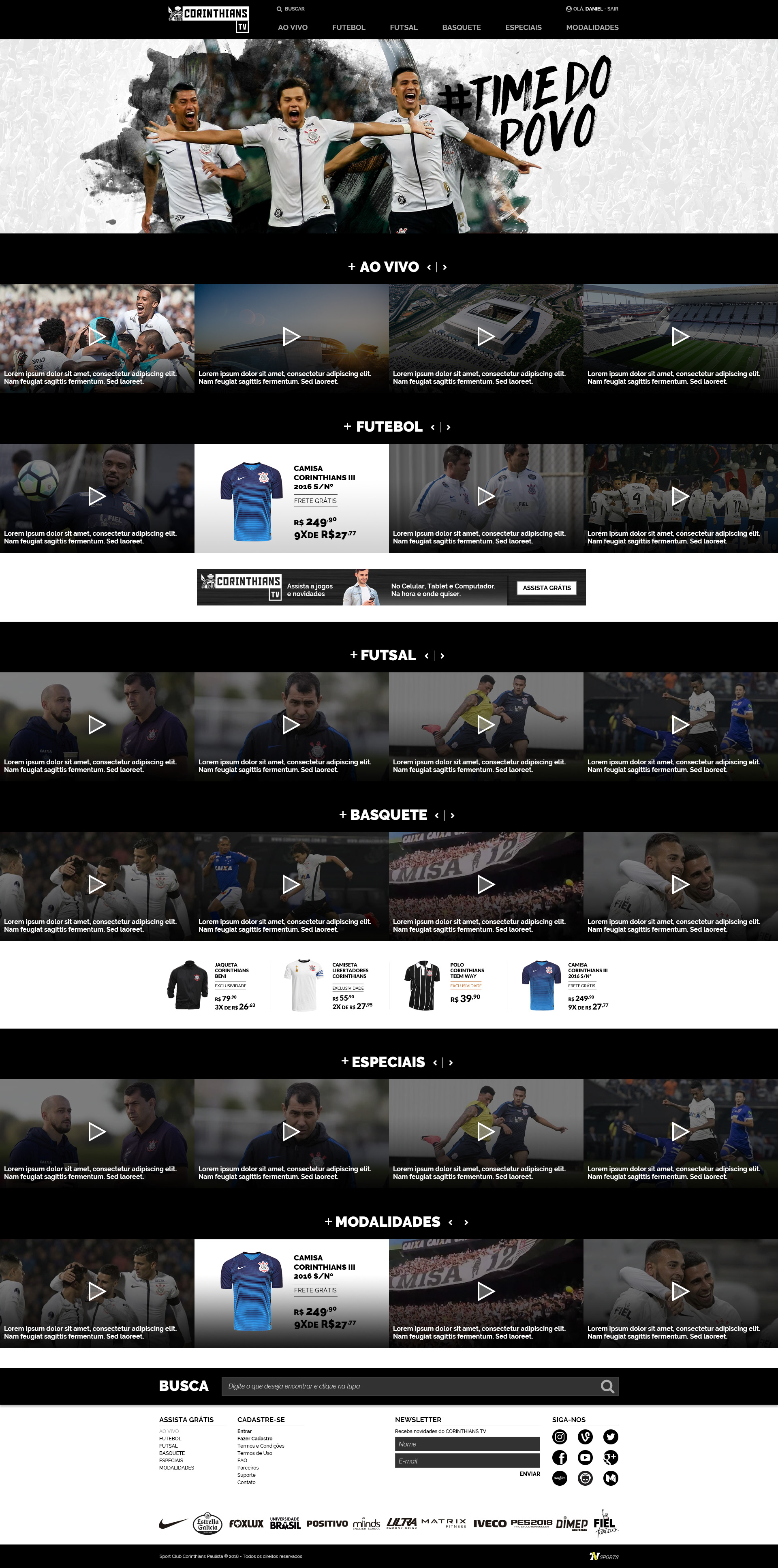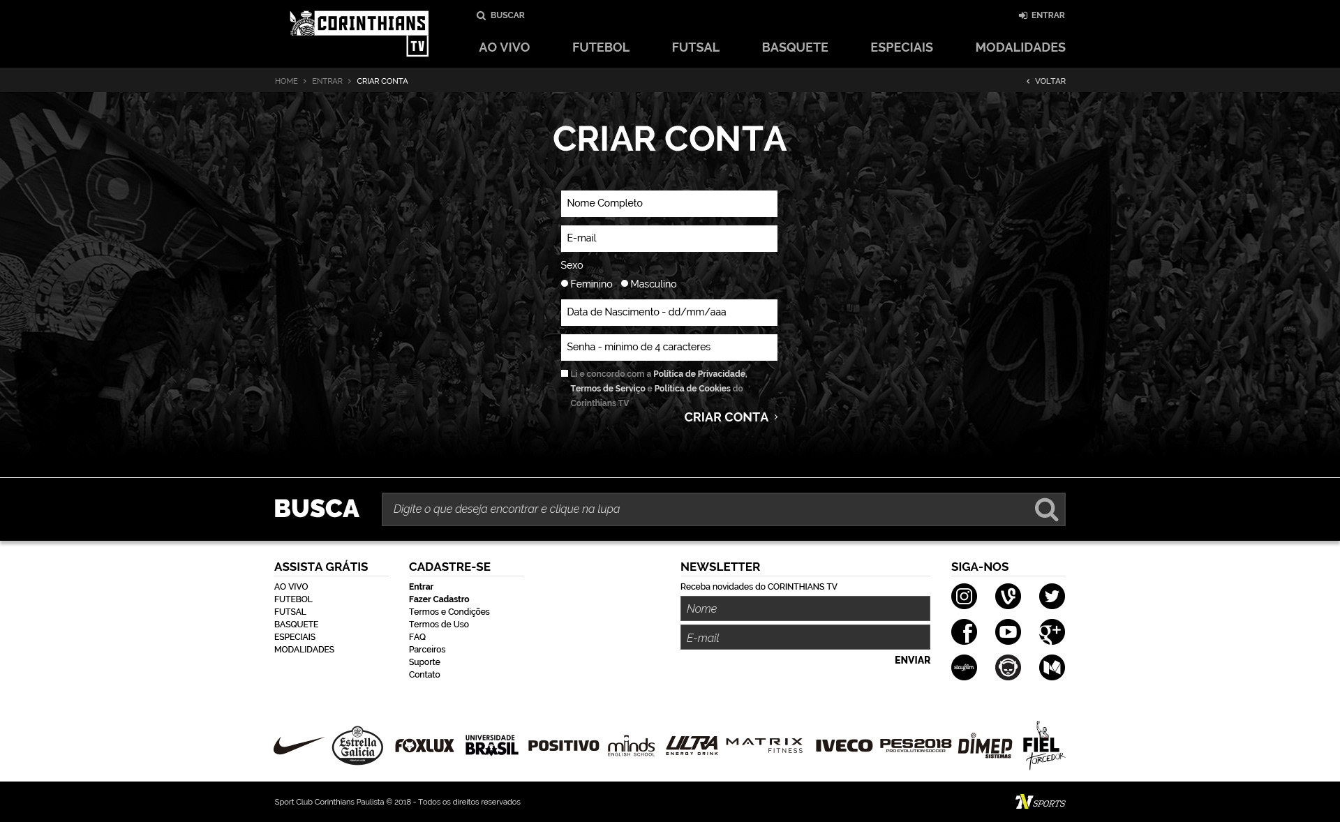Corinthians TV - Criação de site para a nova plataforma de streaming ao vivo e gratuito do Corinthians.