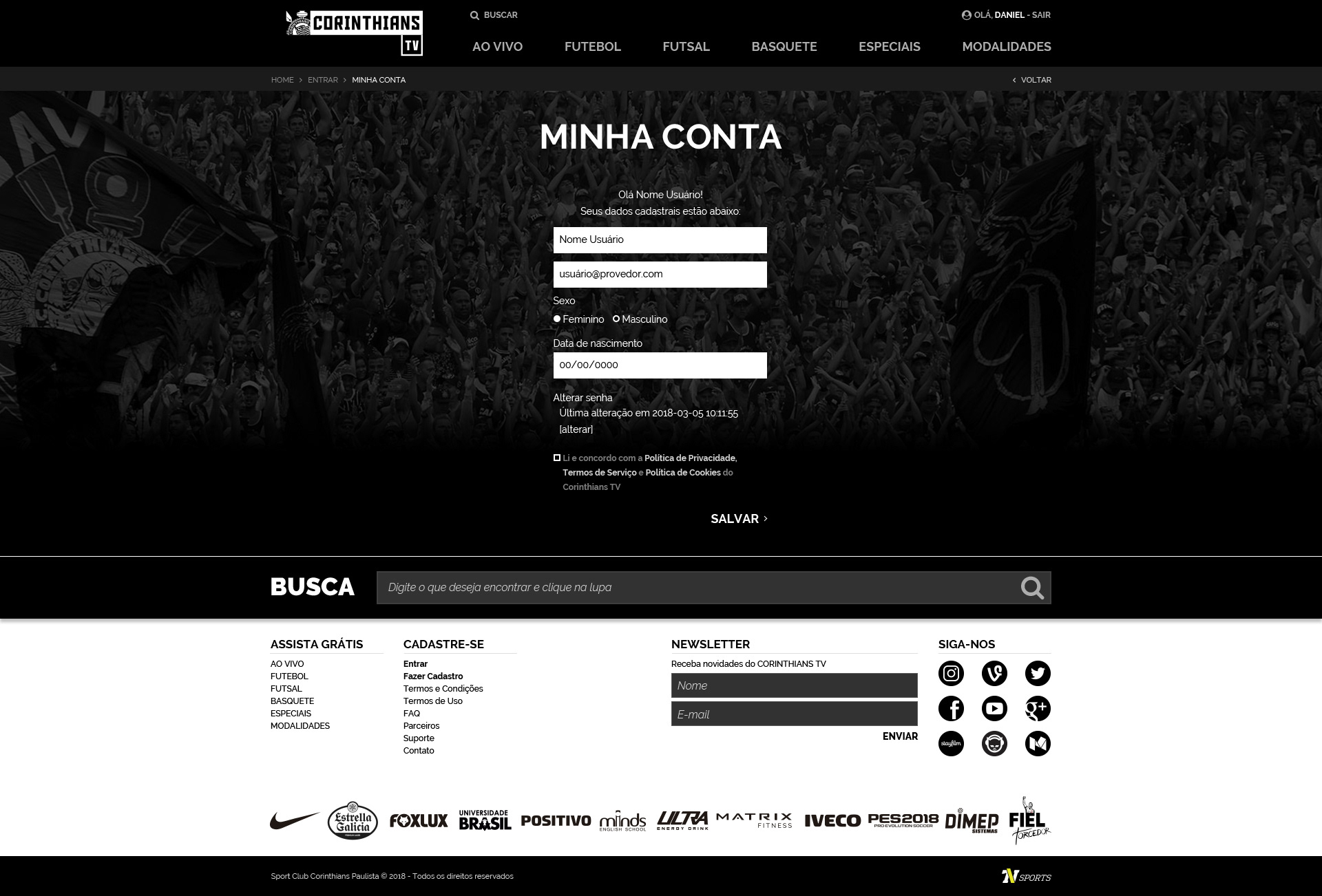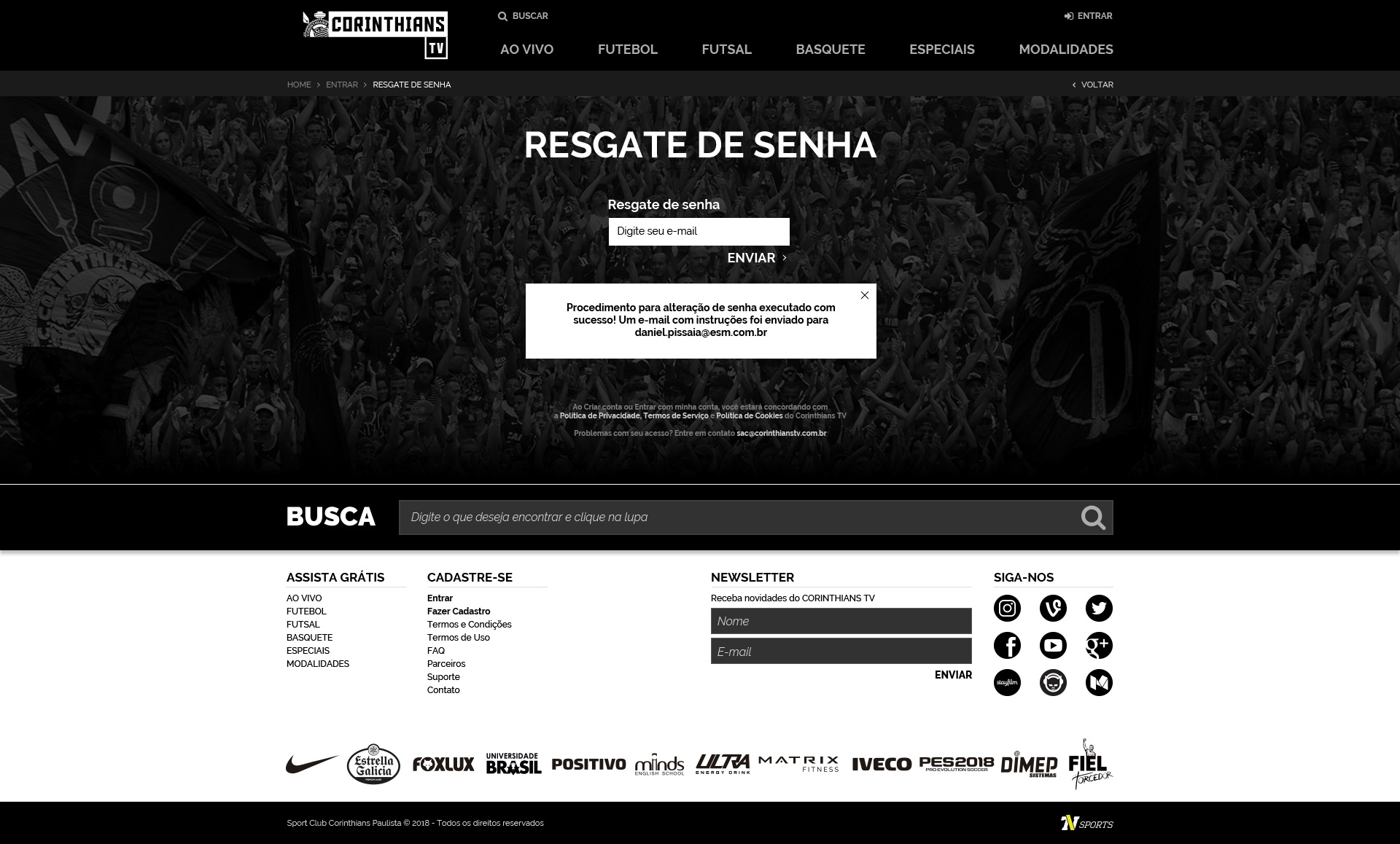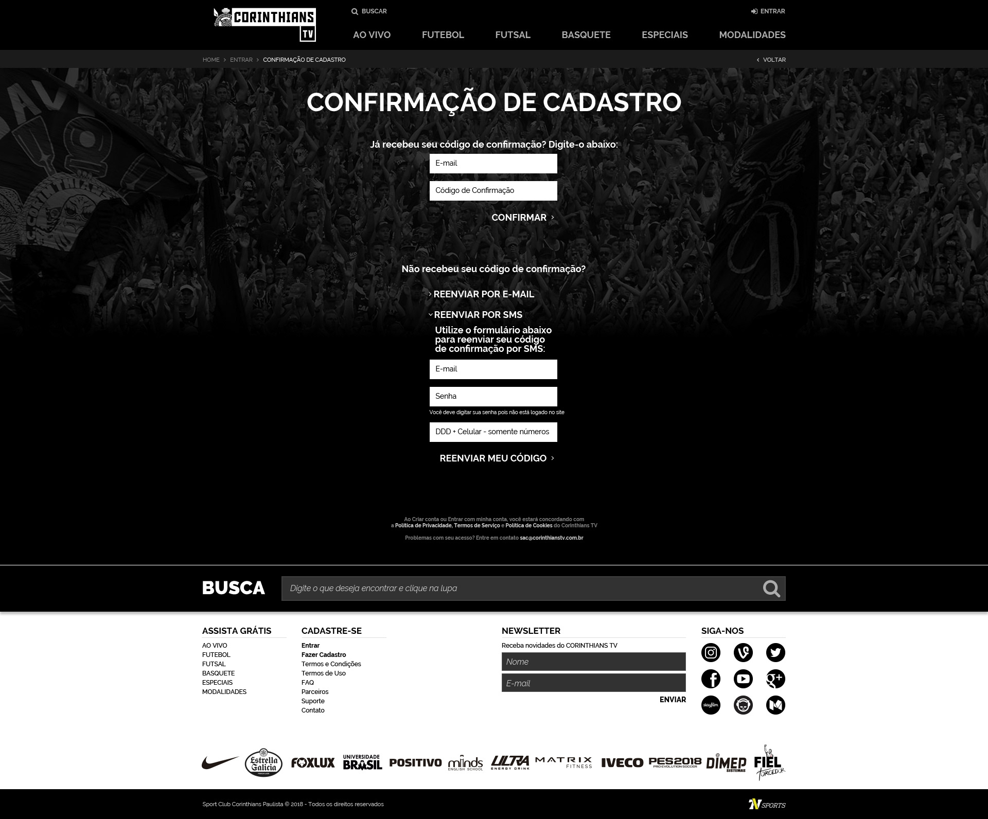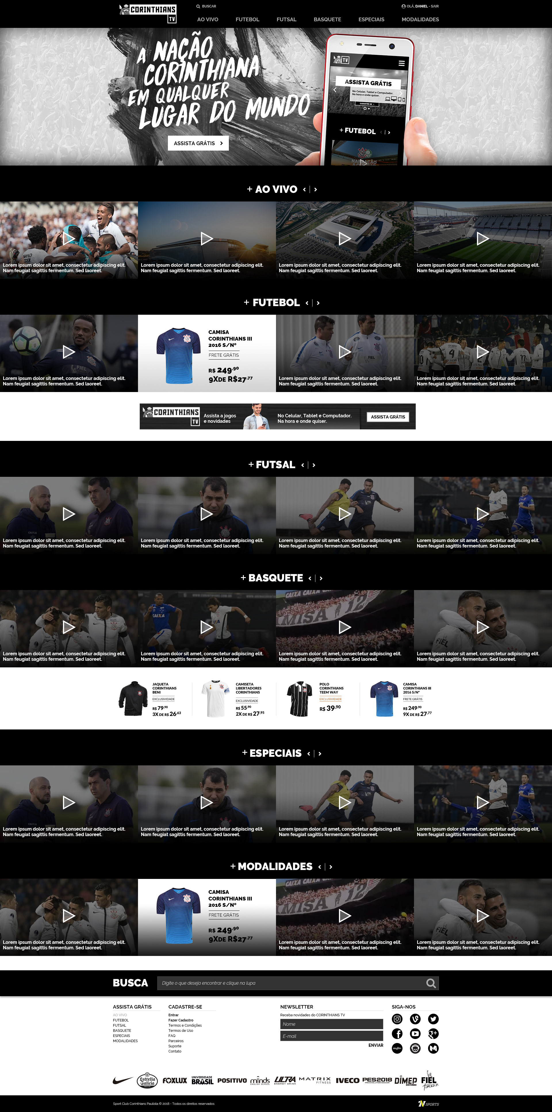 Corinthians TV - Criação de site para a nova plataforma de streaming ao vivo e gratuito do Corinthians.