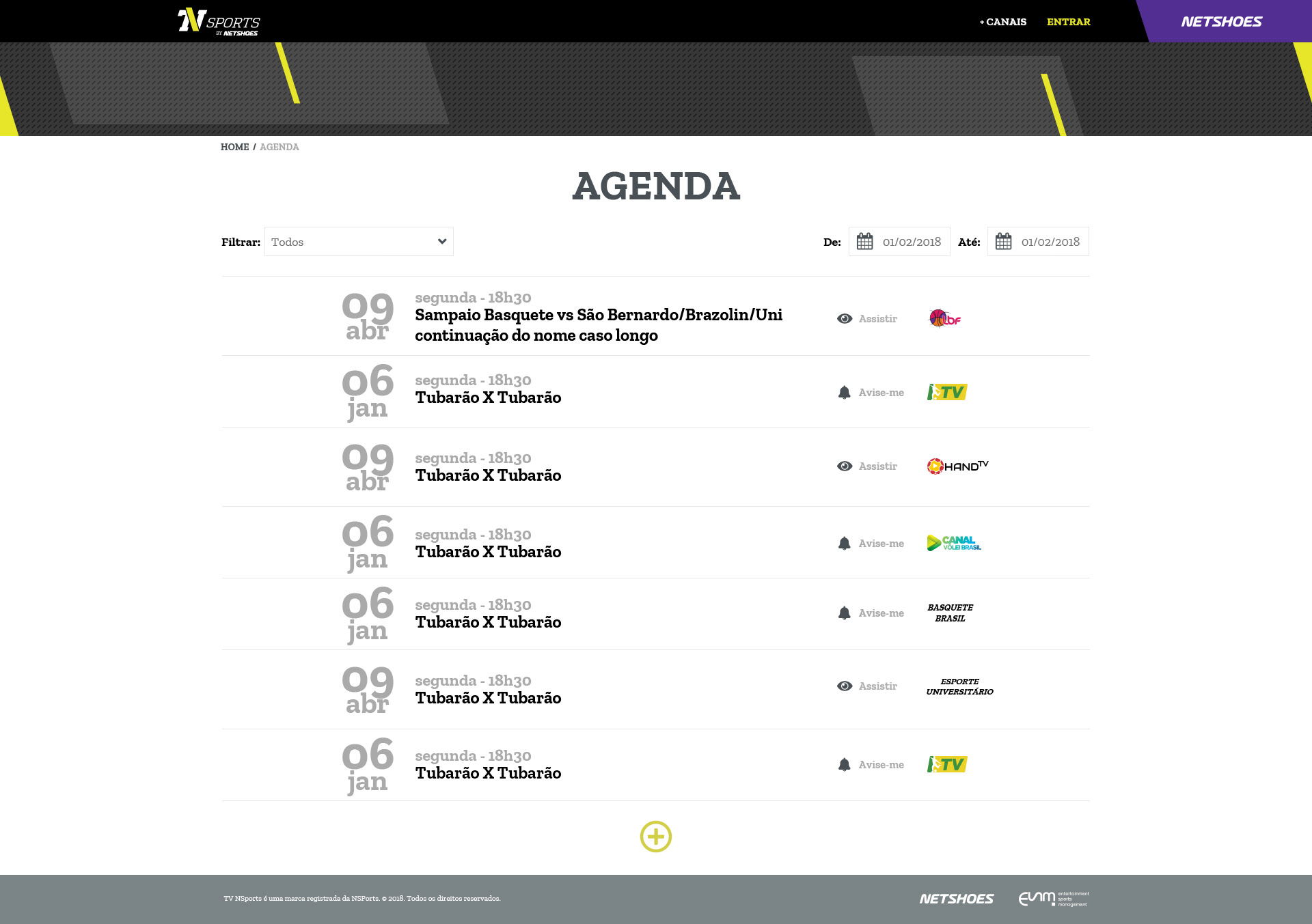 TV NSports - Projeto pioneiro em transmissão de jogos ao vivo e on-line, de diferentes modalidades e de forma gratuita para o público. Criação do portal, canais para as ligas e confederações, artes para divulgação de centenas de jogos em formatos de banners e thumbs de destaques.